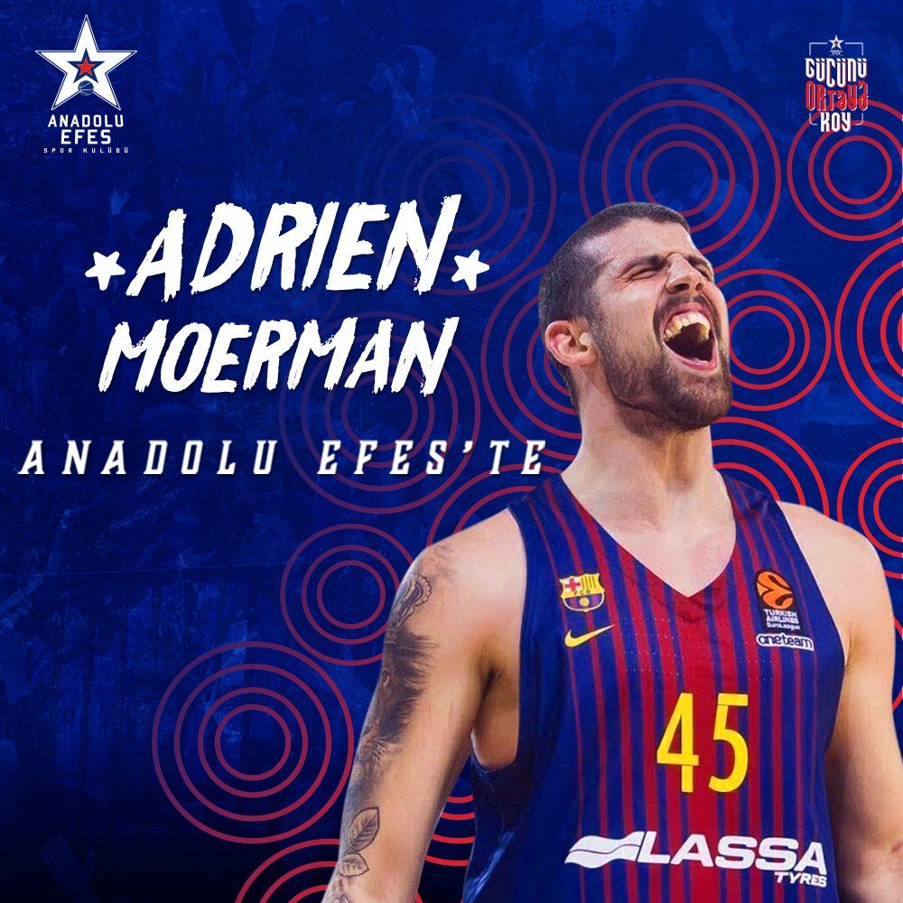 Bugün detaylarını size iletmiş olduğum transfer Anadolu Efes tarafından resmi olarak açıklandı. Fransız forvet Adrien Moerman ile 1+1 yıllık sözleşme imzaladı lacivert beyazlılar.